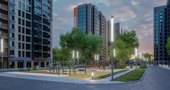 Спортивные площадки для взрослых и детей, велодорожки, прогулочные зоны: бульвар с фонтаном, аллеи и дворы без машин.