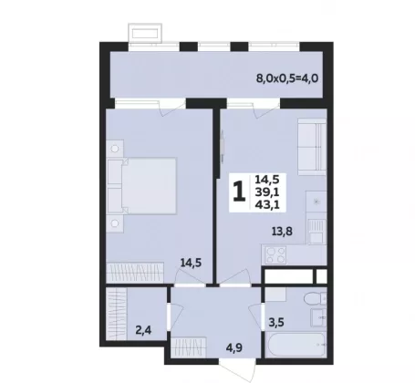 Продается однокомнатная новостройка, 43.1 кв.м., 4/16 эт