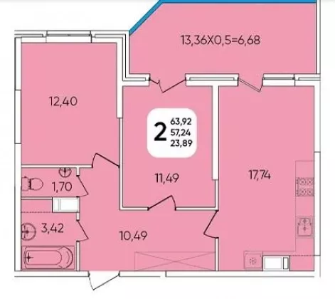 Продается 2-х комн. новостройка, 64 кв.м., 12/24 эт