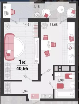 Продается однокомнатная новостройка, 40.68 кв.м., 2/18 эт