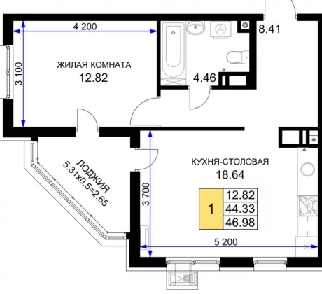 Продается однокомнатная новостройка, 46.98 кв.м., 14/18 эт
