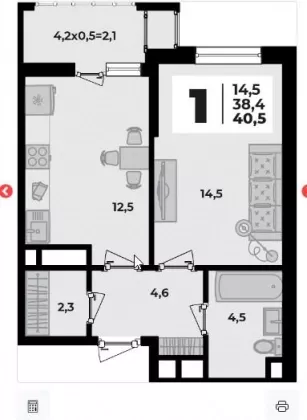 Продается однокомнатная новостройка, 40.5 кв.м., 4/8 эт