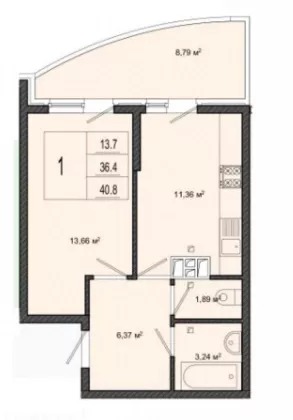 Продается однокомнатная новостройка, 40.8 кв.м., 9/19 эт