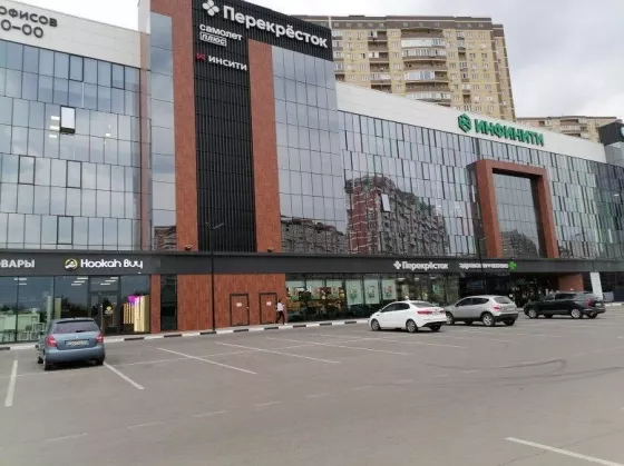 Через дорогу большой торговый комплекс "Стрелка", "Магнит", СБЕРБАНК, "Мандарин" и много других торговых магазинчиков.