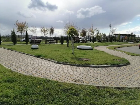 Придомовая территория с ландшафтным дизайном, яблоневый сад и ЗЕЛЕНЫЕ аллеи с красивыми лавочками. Свежий воздух, запах скошеной травы, высокие деревья создает уют и прохладу в летние время.