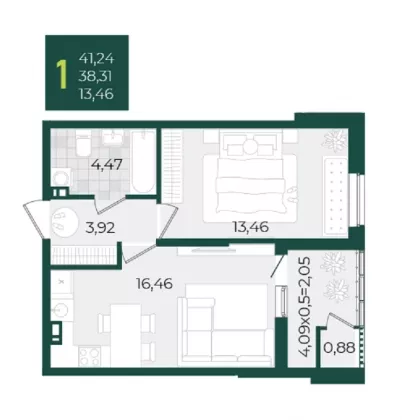 Продается однокомнатная новостройка, 41.24 кв.м., 2/21 эт