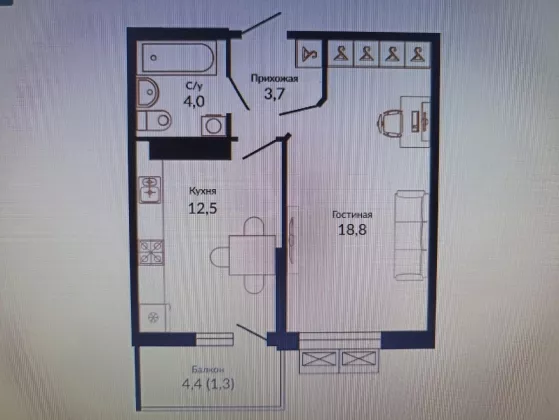 | Жилая площадь | 18.8 |