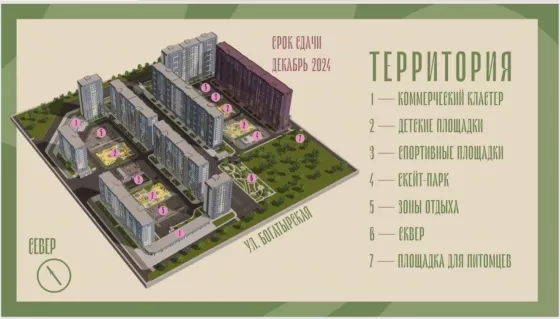 На территории подземный паркинг, собственная парковая зона, детские и спортивные площадки, коммерческие помещения!