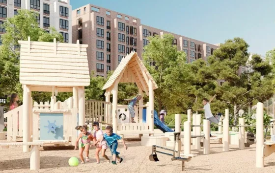 Во дворе фонтан, детские и спортивные площадки по возрастам, теннисный корт.