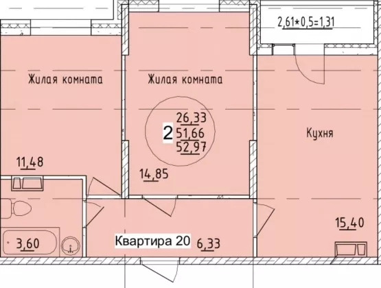 Продается 2-х комн. новостройка, 52.97 кв.м., 4/19 эт