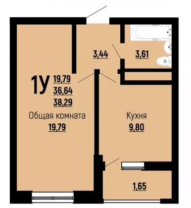 Продается однокомнатная новостройка, 38.29 кв.м., 9/24 эт