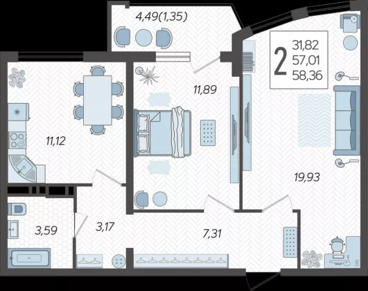 Продается 2-х комн. новостройка, 63 кв.м., 12/21 эт