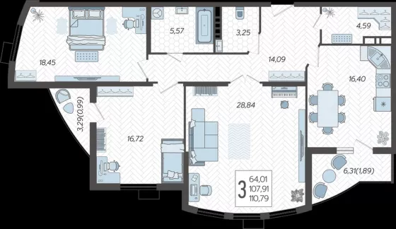 Продается 3-х комн. новостройка, 117 кв.м., 17/21 эт