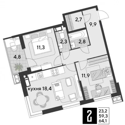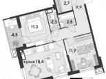 Продается 2-х комн. новостройка, 64.1 кв.м., 10/18 эт