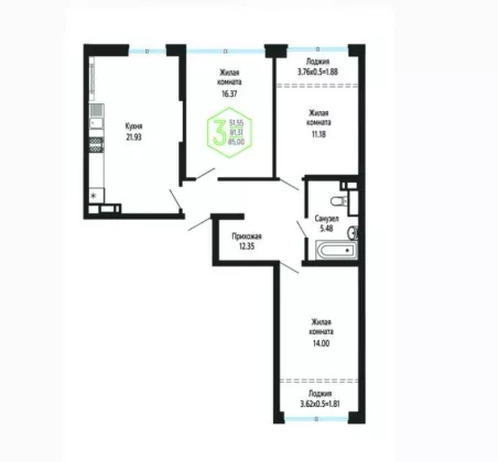 Продается 3-х комн. новостройка, 85 кв.м., 17/24 эт