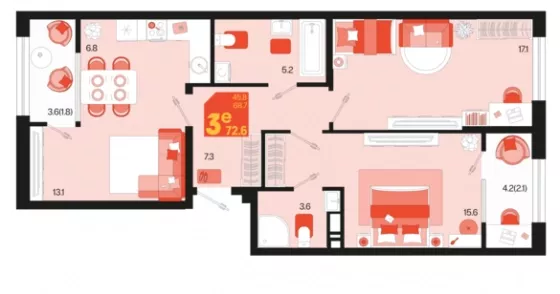 Продается 3-х комн. новостройка, 72.6 кв.м., 12/18 эт