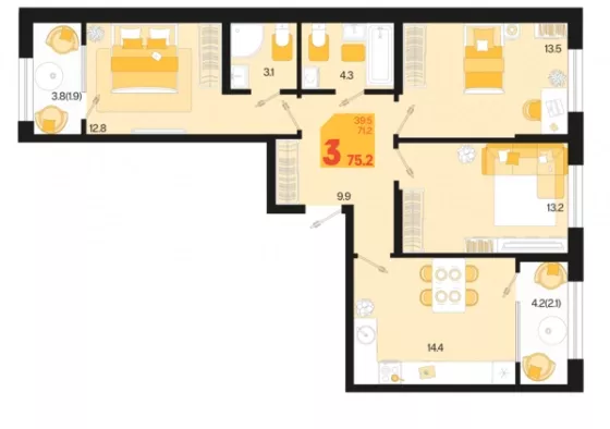 | Площадь, кв.м. | 75.2 |