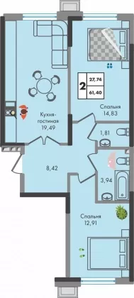 Продается 2-х комн. новостройка, 62 кв.м., 6/9 эт