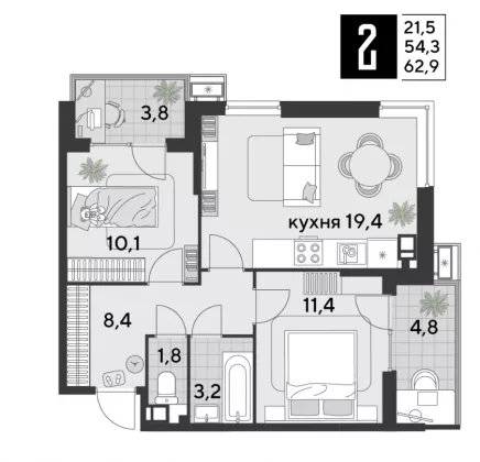 Продается однокомнатная новостройка, 62.9 кв.м., 7/18 эт
