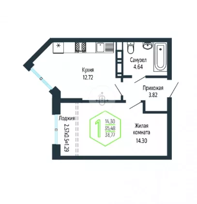 Продается однокомнатная новостройка, 36.77 кв.м., 3/24 эт