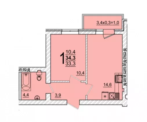 Продается однокомнатная новостройка, 34.3 кв.м., 2/5 эт