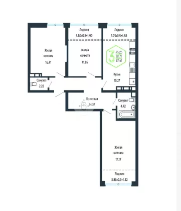 Продается 3-х комн. новостройка, 87.41 кв.м., 4/24 эт