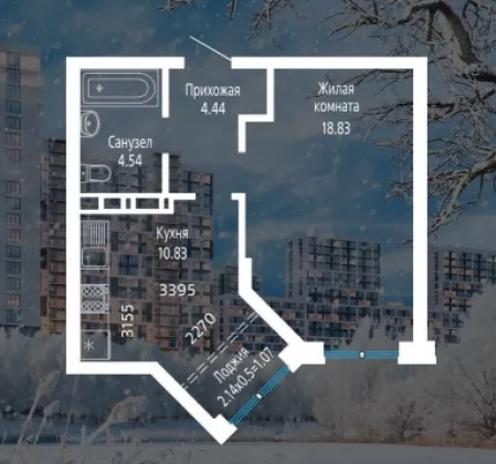Продается однокомнатная новостройка, 39.71 кв.м., 11/24 эт