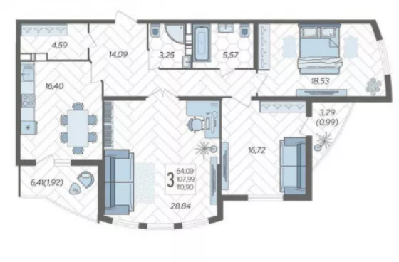 Продается 3-х комн. новостройка, 110.9 кв.м., 12/20 эт