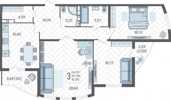 Продается 3-х комн. новостройка, 110 кв.м., 15/21 эт