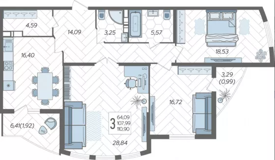 Продается 3-х комн. новостройка, 110.9 кв.м., 16/20 эт