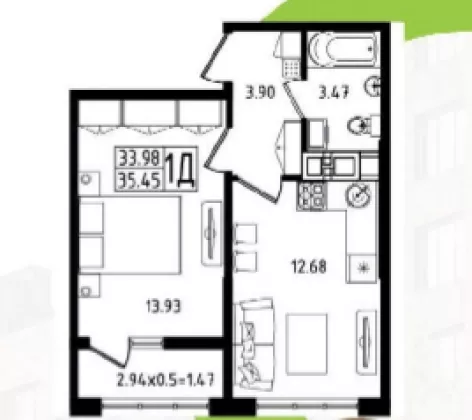 Продается однокомнатная новостройка, 35.45 кв.м., 6/8 эт