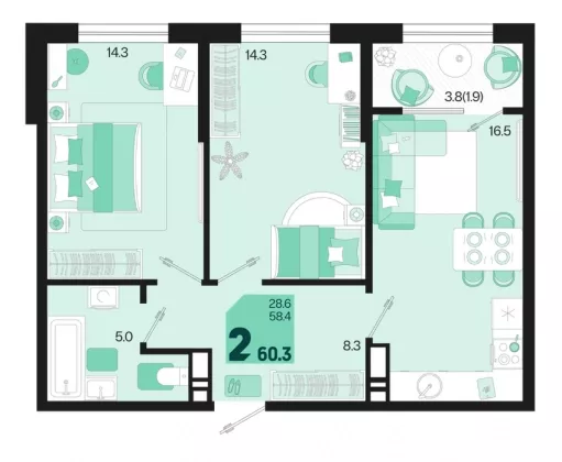 | Площадь, кв.м. | 60.08 |