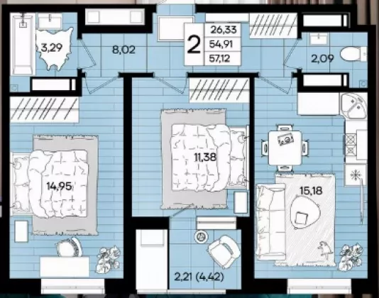Площадь, кв.м.57.12
