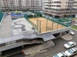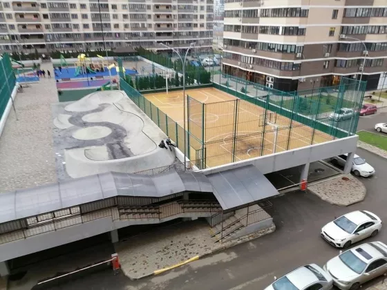 Новый микрорайон, вокруг новые красивые многоэтажные дома с одной стороны и коттеджный посёлок с другой стороны. Школа построена во дворе, ведутся заключительные работы , готовят её к новому учебному году принять учеников.