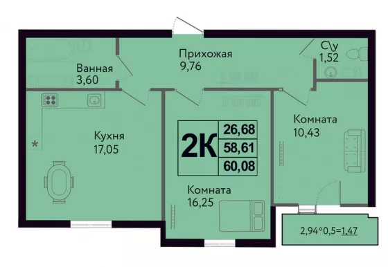 Продается 2-х комн. новостройка, 60.08 кв.м., 12/20 эт