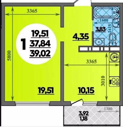 Продается однокомнатная новостройка, 39.02 кв.м., 7/16 эт