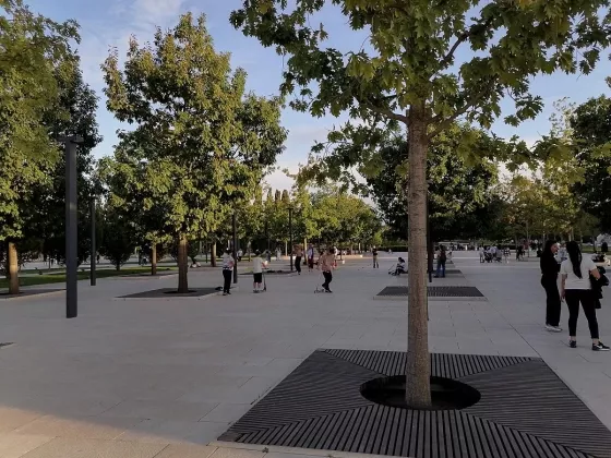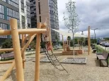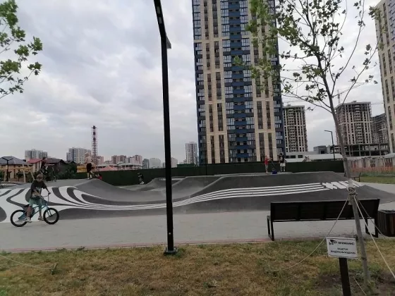 Парковочные места за шлагбаумом, шикарный стилобат с мангальными зонами, детскими и спортивными площадками.