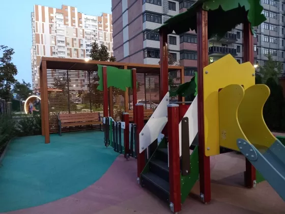 Закрытая территория жилого комплекса- вход только для своих. Зеленые аллеи с зонами отдыха, перголами, беседками здесь приятно прогуливаться, общаться с друзьями и соседями, здесь хочется жить.