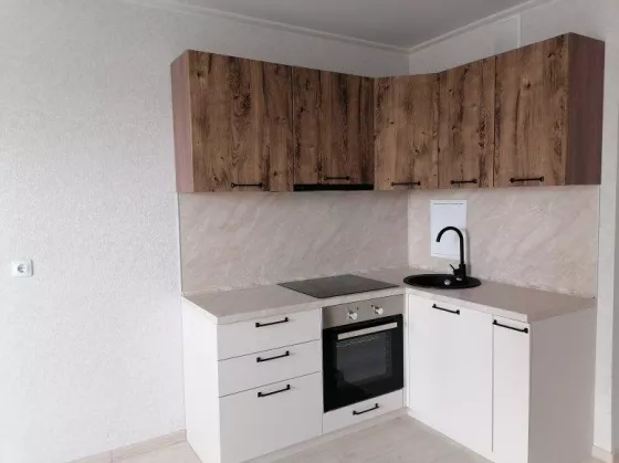 На кухне установлен кухонный гарнитур со всей необходимой техникой: варочная поверхность, духовой шкаф, вытяжка всё новое и добротное. Хороший смеситель и стильная раковина, на мебели дорогая фурнитура. Сан/узел - с сантехникой, балкон остеклен.