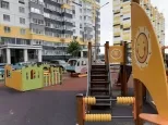 Большое расстояние между домами, много места для парковки автомобилей, также есть многоуровневая стоянка. Двор с красочными детскими и спортивными площадками, скамейками для отдыха и зелеными кустарниками и деревьями.