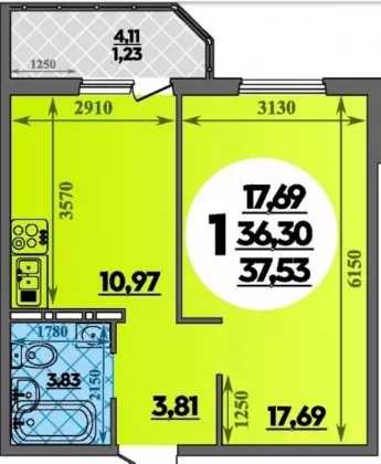 Продается однокомнатная новостройка, 37.53 кв.м., 6/16 эт