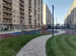 На первой линии ЖК высажен молодой яблоневый сад, красивая аллея с зонами отдыха. Много парковочных мест, двор вымощен плиткой, красочные безопасные детские площадки ограждены от проезжей части.