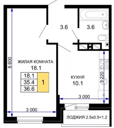 Продается однокомнатная новостройка, 36.6 кв.м., 14/16 эт