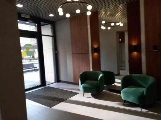 В доме три лифта, светлые холлы, дизайнерский ремонт, колясочные и боксы для велосипедов, удобная навигация, консьерж-сервис, круглосуточное видеонаблюдение.
