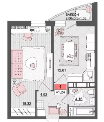 Продается однокомнатная новостройка, 41.24 кв.м., 10/19 эт
