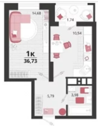 Продается однокомнатная новостройка, 36.73 кв.м., 5/18 эт