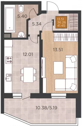 Продается однокомнатная новостройка, 41.45 кв.м., 2/17 эт