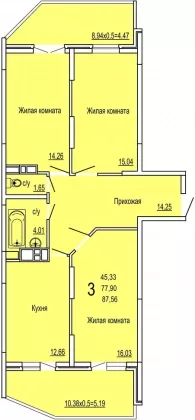 Продается 3-х комн. новостройка, 87.56 кв.м., 13/17 эт