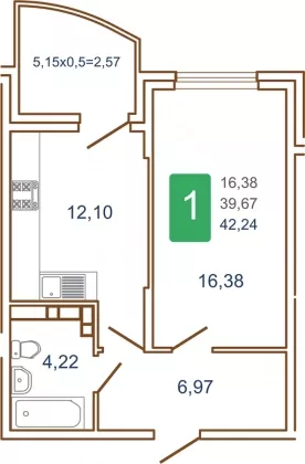 Продается однокомнатная новостройка, 44 кв.м., 10/16 эт