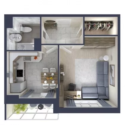 Однокомнатная квартира с гардеробной комнатой, большие окна панорамное остекление на лоджии, тонированные стёкла с защитой от ультрафиолетового излучения.